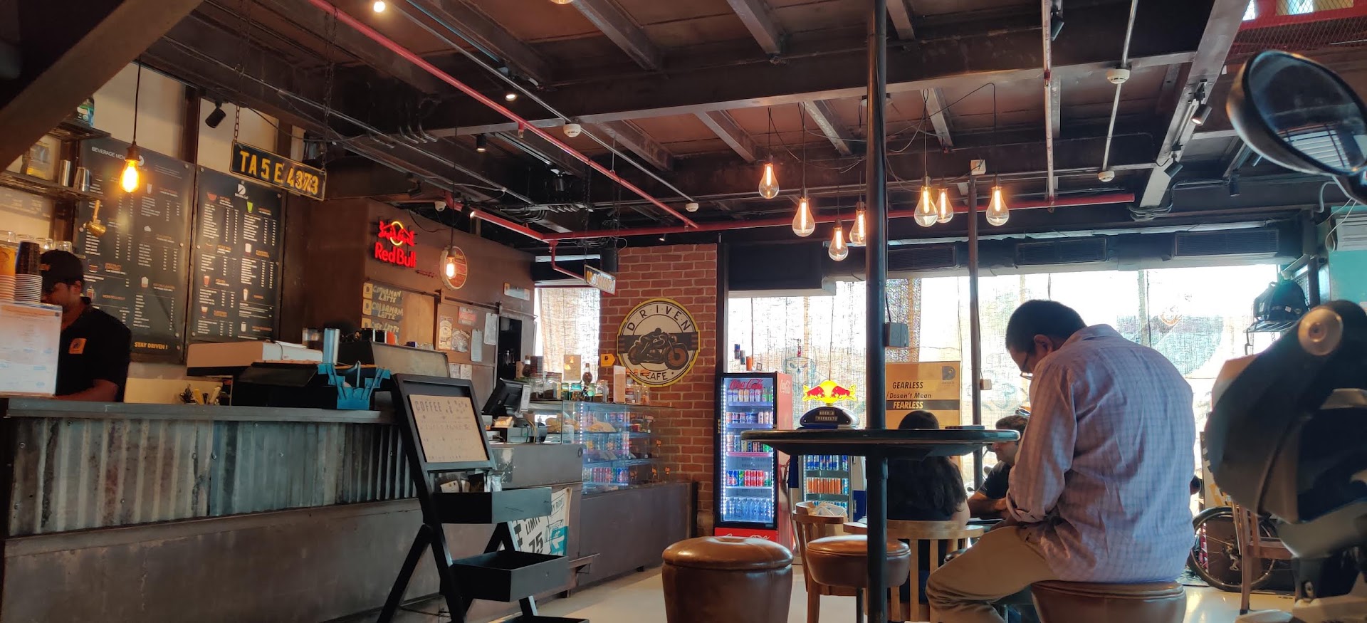 Ā Ā Ā Read moreOne of the best cafe in hyd. The best part about this cafe is it's pure veg cafe. The dishes served here are very healthy and delicious. As the name suggests it's cafe for the riders or who love bikes. This cafes offers bike on rent that too all super bikes like harley davidson, African twins, re Himalayan and many more and that too modified and in n very good condition as if you are taking care of your own bike. Interior of this cafe is so beautiful and riders theme based. Ground floor they have kept some realtime modified bike models and so beautiful wall arts. First floor is dedicated to cycling. Which opens after 6pm. They have smoke area as well where you can chill and order from the cafe. Staff of the cafe is also very generous and we'll mannered. Service is amazing. They play really nice music as well. You can enjoy your work peacefully over there. I personally don't like hyd city much, but there are few places which I love the most. This place is one of the best place in hyd. You must visit when you are in hyd if you have rider...