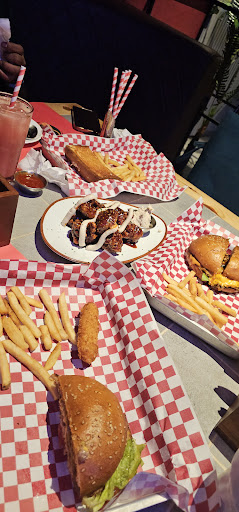 It was my first time visiting, and I was pleasantly impressed! Everything we tried was amazing. We ordered mozza sticks, pulled lamb burger with peri peri fries, a buff (beef) burger with plain fries, garlic bread, kiwi mocktail, blue lagoon mocktail, dynamite prawns, chicken fingers with fries, and hazelnut cappuccino. I'm so surprised that everything was delicious. The prawns (shrimp) were so crispy as were the mozzarella sticks. I loved that the mozza sticks came with ranch dip! Coming from the US, I really missed the taste of ranch! The blue lagoon was just ok, but the kiwi mocktail was a hit! The burgers were so juicy and flavorful. Definitely missed the taste of jalapeño peppers, so I loved having those on the burgers. We also ordered wings and a vanillla affogatto, but I didn't get a chance to try those. I absolutely love that the food was properly American tasting and not made to taste Desi with Indian masalas (spices). Don't get me wrong, I love desi food, but when I have American food, I want it to taste American. I will 100% return to...
