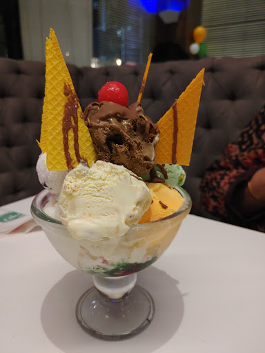 Titanic: As it goes by the name huge. It was like a mountain. Yeah that’s right. The titanic which consists of 7-8 slices of different flavours of ice-cream topped with chocolate & strawberry syrup, tutti-frutti and wafers. The presentation was lit.