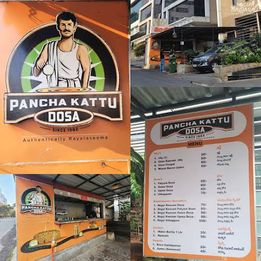 Read moreThe name 'Pancha Kattu Dosa' definitely adds some amount of curiosity to check out this place. Surprised to find this small joint inside a compound of a commercial building, (see image it says ebony hotel). Since it is in the vicinity of annapoorna studios, and few corporate offices there would be a flow of visitors to have idly, dosa and coffee. The hype is more because of the name. (check google translate for language translation of pancha kattu). About our dosa and idli order, the dosa was karam palyam dosa which is similar to mysuru masala dosa except that the karam was typical rayalseema flavour. also a first for the city cbd area. The rayalseema region which the owner bharan explained is from Kurnool, Anantapur, kadapa and chitoor which shares border with karnataka. the overlap in flavours and taste is but natural. the idli was very in Andhra in preparation but this one without the. podi and ghee did not hit home. We ordered the famous 'nannari' drink , another popular item from rayalseema to down our food. Priced at INR 50 per glass, it was good. The dosa price was steep for a 'street food' type of place If they reduced the price and the number of staff lingering behind the preparation counter it would work better. One cannot help but notice that. only one person was actually pouring the dosa batter over the large base. The make-shift arrangement to dine-in is minimal, but may not be practical during monsoon. But the effort in trying to give neat food fare was not gone unnoticed. This place is going to stay and satiate a lot of the Telugu...
