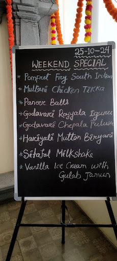 This restaurant is a great spot for family and friends to gather and share a meal. However, the music was excessively loud, making it hard to communicate with the waiter staff. On a positive note, the sitafal milkshake is a must-try! The ambience reflects a lovely Andhra-style design that I appreciated.