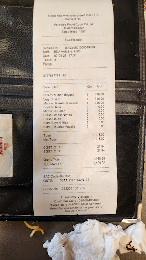 Worst service ...plz Paradise must take care of their staff otherwise slowly legacy brand will vanish and must happen for not treating...