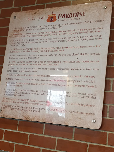 Read moreHaving visited Paradise on several occasions specifically for their renowned biryani, I can attest to its reputation as a must-try for biryani enthusiasts. Situated conveniently near the Reliance petrol pump on the Kompally service road, this vendor offers both dine-in and takeaway options.