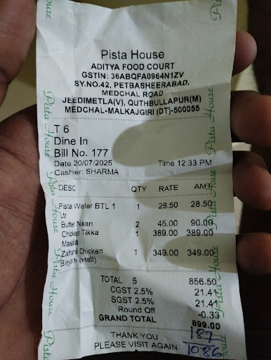 My wife and I have always been loyal customers of Pista House, especially the Gandimaisamma branch, where we’ve had consistently good experiences. Based on that trust, we decided to visit the Suchitra (Kompally) branch around 12:40 PM for lunch.