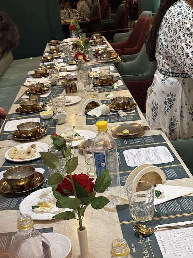 We ordered azad kebab, chicken salad, zaffrani mutton biryani, and double ka meetha in the dessert. We received azad kebab and it was presented in tricolor which looked great. The taste was good but I liked the white kebab more. Next, we had a chicken salad which was basically chicken and lots of capsicum & some mayonnaise. And finally, we received our zaffarani biryani. The waiter was holding the utensil from the bottom without any cloth in between and knew that the biryani is not served hot. And I was right it was cold biryani. The table next to us received their biryani after 10mins and they scolded the staff twice for the same mistake. Later the manager came and served them another biryani. The taste was also okayish nothing extraordinary.