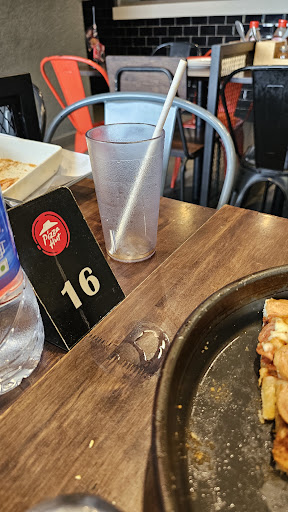 Speaking of the food, it was a complete letdown. The meat on the pizza was dry and utterly tasteless, lacking any seasoning or flavor. Even worse were the sticky glasses in which our soft drinks were servedāhygiene was clearly not a priority here. The pizza pan itself was dirty, with visible residue from previous bakes, and the plates provided were far from clean. Sticky tables and chairs added to the overall unkempt atmosphere, making us question the restaurantās cleanliness standards.