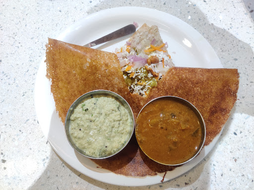 One of very few 'darshini' type of hotels I have seen in hyderabad, which serves typical south indian dishes through out the day ('Darshini', a term popular in Karnataka, refers to type of hotels where one can have food without wasting much time. Usually these are self-service types, where people can buy tokens for food items at the cash counter and walk up to food counters, where mostly all the food items will be available 'ready-to-serve'. Once the food is obtained by the customer, food is had at tables where the customer just stands as he eats food quickly. North Indian cuisine is typically available in the evenings. prices are on par with average restaurant price. Best to visit for breakfast if you want freshly made south indian breakfast (idli, vada, dosa, rice varieties etc) served hot. The hotel has two levels; ground floor is the typical 'self-service area and the first flour is where patrons can sit down to have food...