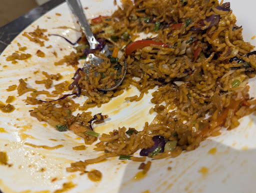 Food. The starters are absolute wonders, especially Veg 65 done a little bit crispy! It's marvelous and you could eat only this dish for the rest of your lunch/dinner! Most of the starters are delicious. Rice items are tasty with a special mention of Hundi Biryani. Gravies and curries are good too. You have a considerable option with Rotis and Parathas. Deserts are not an option here coz they don't serve anything other than Ice Cream and Fruit Salad. The bill surely doesn't burn a hole in your pocket as a group of 5 adults can eat to their fill with the bill coming around Rs. 1500/-