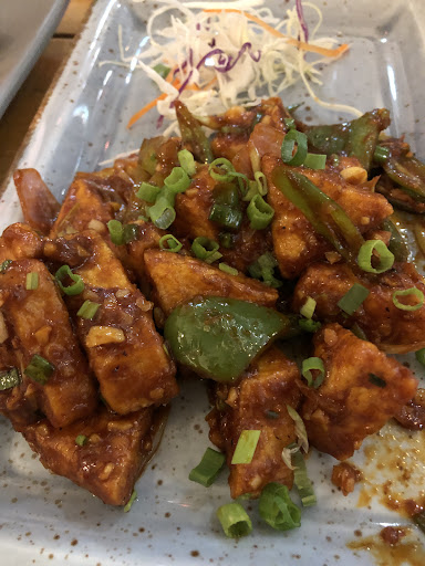 Food Tofu Chilli The Tofu Chilli was deliciously spiced, with a pleasant balance of crisp vegetables and firm tofu. A touch more heat would have taken this dish up a notch.