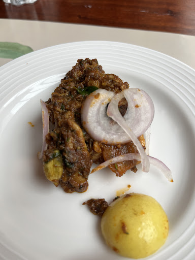 As we ventured into the main course, the Gutti Vankaya Pulao, a breathtaking brinjal pulao, took center stage. The moist pulao rice harmonized impeccably with the tangy and spicy brinjal curry, an exquisite culinary marriage that tantalized our taste buds to new heights. While the Ghee Rice with Pottelu Kura (mutton curry) held its own, it couldn't quite match the brilliance of the former.