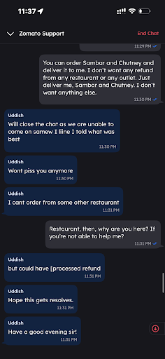 Read moreNever order from here at midnight. I ordered Idly, plain dosa and masala dosa and they didn’t even gave chutney ot sambar. First of all the food got delivered very late so it became cold and dry. Very Very disappointed by their service. The restaurant is not lifting the call so is the delivery partner. And we order from here only for Chutney and Sambar, as my daughter loves it. As she is not eating now, how can i? if I’m calling the restaurant, they are just ignoring my call and my WhatsApp messages too. I am not gonna take this shitty service after paying ₹466. So I request everyone not to order from this place as they don’t have any Care for their customer. They are just selfish people who think...
