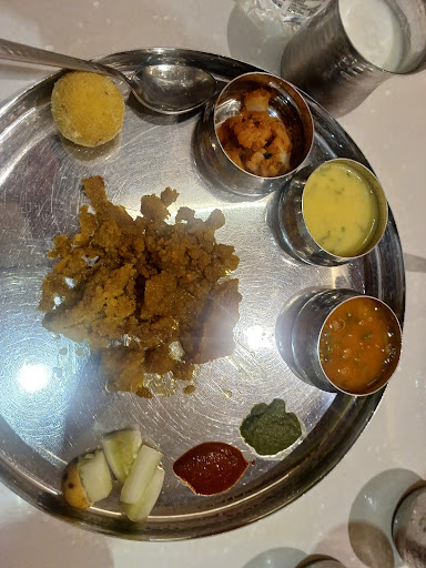 The rice was stale and hard. Most of the food was not hot. Papad was soggy. Chaas had a smell to it. For a so called upmarket place like this, Hygeine was not maintained at all. Food was being served by bare hands.