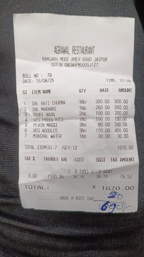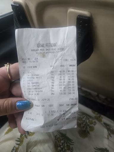 Read moreWe paid 2180 for food here. Tandoori roti was not available. Normal roti was not available. Only laccha of 80rs and naan of 110 rs EACH was available. So one was forced to buy this. Kids wanted dosa and noodles, that too was unavailable. But people who came after us ordered dosa, it was available for them. When asked, the waiter said "karigar ab aa gaya". We said to give salad before food, he gave already cut salad covered in cellophane from the fridge, which was smelling. Food came 35 mins after we ordered. Laccha roti was half cooked, sev tamatar was sweet. And the waiter was horrible. He continuously said "jaipur delhi se toh acha hai". I swear if we didn't have kids in our group who were hungry since morning, we...
