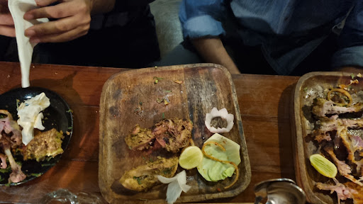 Before visiting here I use to think CAVA was the worst place in terms of food quality, I was wrong and now this is the worst restaurant/Bar with worse quality in terms of both, the food quality and as well as the the staff attitude and knowledge. Following are some of the reasons why I say it's the worst: (I went here with my friends) During this harsh times of COVID and much worse diseases infecting the population, we didn't see any sanitization or cleanliness required for health reasons. While we were looking into the menu and asked the waiter about what was present in the dishes whose name doesn't tell what's in them. The waiter said there were 5 dishes part of platter but didn't knew anything other than paneer. Waiter was not knowledgeable about the dishes being served in the restraunt. Waiter attitude towards customers was rude. At one time their rudeness made one of my friend to call another waiter and let them know to keep check on their staff attitude. This could be personal to me but I found the overall environment in this place to be kind of dark and dipressing because of the video songs which show nudity, vulgar dance and a lot of swear words in the lyrics. Apart from the songs, the big portraits on the wall with dim lit environment and a lot of waiting after food order enhanced the feeling.