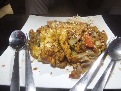 PAD THAI NON - VEG NOODLES ( 4.5 / 5 ) Noodles made from Sticky Rice Exotic vegetables along with chicken, prawns and eggs are used to make this dish Prawns were fresh and chicken were tender Had perfect hint of garlic