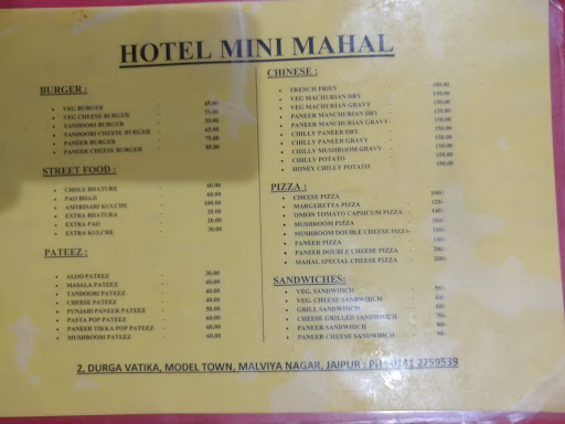 Read moreCourtesy to this strategic location, foodies in and around the neighborhood can walk in to this eating house conveniently without facing any hassles related to commuting to this part of the city. It is one of the most sought after Restaurants in Malviya Nagar. For people in other parts, the restaurant also has branches at other locations which include Near Trimurti Apartments - Malviya Nagar, Near Trimurti Apartment - Malviya Nagar, Model Town,Nr Trimurti Appt and can also be visited for an appetizing meal. This is a one of the renowned Restaurants in Jaipur. Hotel Mini Mahal at Malviya Nagar makes sure one has a great food experience by offering highly palatable food. The various services offered at the venue include Pure Vegetarian . One can make their payment via Cash, Master Card, Visa Card, Debit Cards, Credit Card, American...