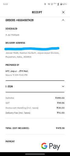 NO REFUND RECEIVED. Very worst service. I have scheduled an order on 9-07-2025 and they didn't deliver the order. When I called the restaurant and requested to delivery it, they said no agent available. So i have asked for refund on same day and they said we have just sent a mail to refund but they didn't send that mail. When I requested for picture of the mail sent , no response from them. After continuous follow up they sent mail only on 25-07-2025 for refund. Still no refunds and they will not pick the call and in background we can listen Manager saying the agent the tell that he already left.