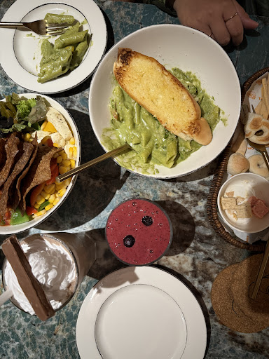 I tried their Pesto Burrata Pizza, and it was nothing short of amazing. The crust was beautifully baked â crisp on the outside yet soft inside. The pesto base was rich and flavorful, with just the right amount of garlic and herbs to balance it out. Topped with caramelized onions, fresh greens, and that gorgeous ball of creamy burrata in the center, every bite felt indulgent and refreshing at the same time.