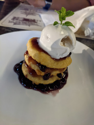 Apple fritter with blue berry: I loved the coconut made Vegan ice cream topped on this dessert.