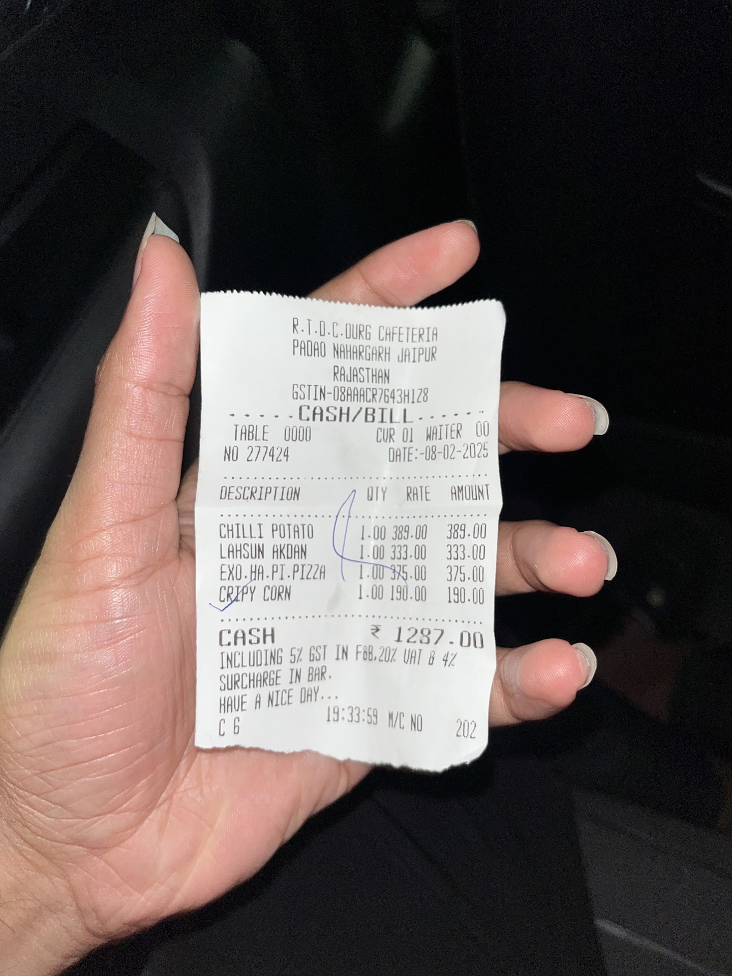Absolute money grab scheme being executed right from the Nahargarh Fort entrance - Pay ₹50 Parking for Nahargarh Fort no matter if you don't even park your car there. If you do park it there, the restaurant is another 1 to 1.5 KM away from the Parking! Entrance fee for the Restaurant - ₹100! per person with which you get a complementary Tea, Coffee and Water. Water is just better, trust me. I mean after all that, at least the service should be classic good. No. Plain No. Only 1 menu for the whole rooftop section available. There are like more than 10 tables on the Rooftop Section. 2 VIP, Reserved sections where all the focus of the few available waiters was. The leftover waiters are frantically running around, not listening to the whole order, just plain ignoring the customers. Since liquor is available, one of the waiters is always chucking left over booze in the bin emptying the bottles right in front of the customers.