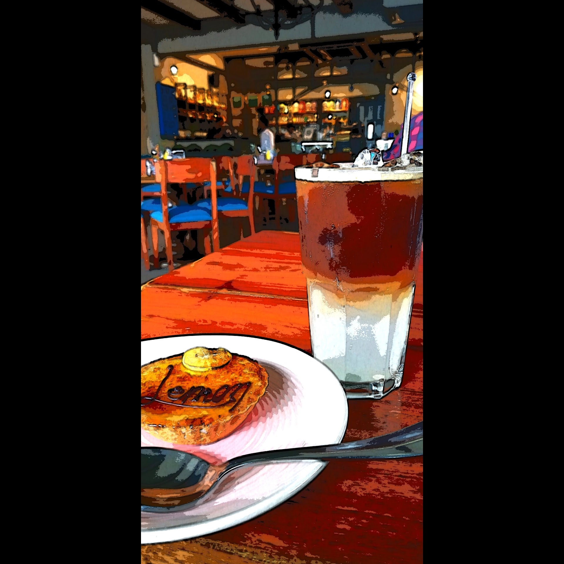 The cafe has a contemporary interior dominated by blue and brown shades. It bears some similarity with OTH like a choice of indoor, outdoor and enclosed seating space. Rustic by OTH is well-lit and vibrant which makes a departure from OTH which has muted and solemn atmosphere.