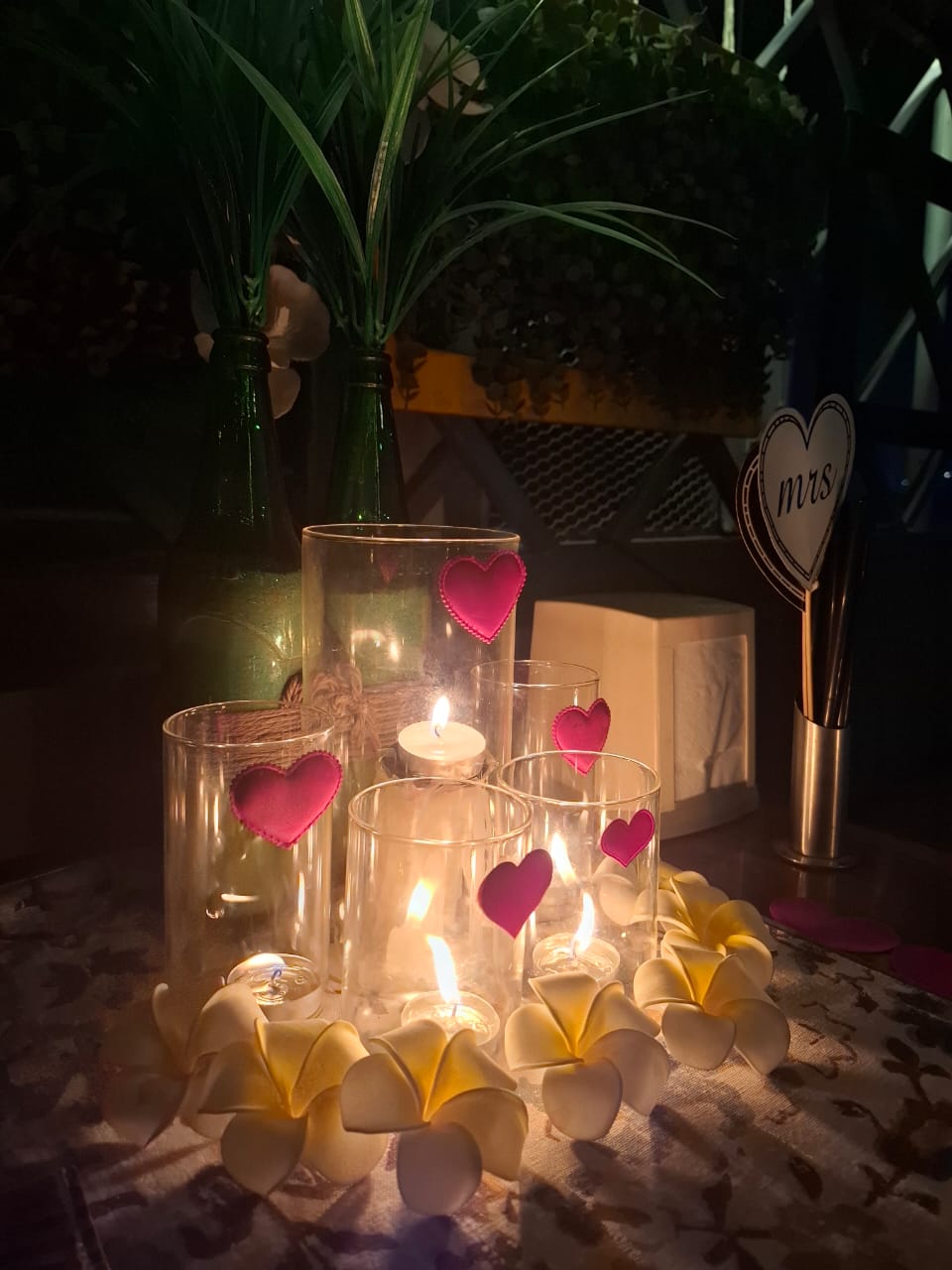 I paid 1600 for the candle light dinner decoration with additional Rs 150 love board that they forgot to keep on table, when I reached there I asked them to keep it on table. They bought it front if all of us, during the moment so the decoration was incomplete.