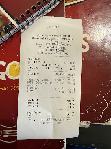 Value for Money: Given the quality of the food and the exceptional service, Amigos Hazratbal is a fantastic value for money. Itâs the kind of place where you donât mind spending a little extra because the experience is so worth it.