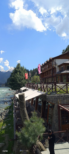 Over Hyped ! We (3ppl) had been to Pahalgam yesterday and had heard a lot from Insta about this place so it was on the cards. The place looks absolutely dreamy with its great loc et al but honestly that’s it. Talk about luck, the place boasts of celebs having visited the place so it def holds a place of awe. The Food doesn’t. The PRICING def needs a recheck. The chicken popcorn was sub mediocre. The hot fried chicken pizza was nothing but chicken popcorn strewn on a medium sized pizza. wild mushroom risotto wasn’t bad. The so called stuffed chicken had some grassy thing slathered on chucks of chicken though the chicken was tender. THE ONLY SAVING GRACE were the Hot chocolate and Biscoff & salted Caramel shake which tasted divine. Then i made the mistake of asking the lady serving us what’s your spl here,she said mutton chops and we ordered that. Think chops (2!!) on a small bed of mash potatoes with hardly any vegs as accompaniment costing a whopping ₹1995! Tasted not bad. but for that amount even a fine dining would give larger portions. The service was good and the weather even better. The place faces NO COMPETITION and that seems to be one reason why ppl are forced to come here due to lack of scenic cafes nearby. They really need to rethink their pricing it’s daylight robbery and nothing else. The total bill came...