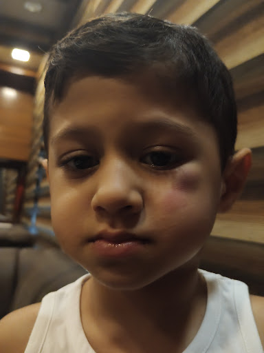 One of the staff members, Ms. Monica, audaciously responded, "I tried stopping your child, but he didn’t listen" — we’re talking about a 2.5-year-old toddler. Due to sheer negligence, he ended up with a visible bruise under his eye.