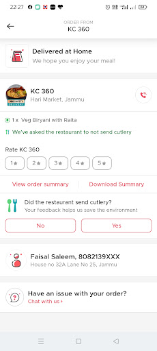I ordered veg biryani through Zomato, my order was accepted and i was eagerly waiting for the food to get delivered. After 1 n half hour I called up the restaurant and asked the reason for delay in delivery as my app was showing it is ok the way. The person there said that they haven't accepted my order and the value is low so they won't be able to deliver my order. When Zomato interferes Restuarant said the order was delayed because of rain my Gosh i am in same city and here is no rain. After few minutes they put delivered tag on my order. Such an unprofessional approach towards the business. It seems they are trying to make fool of Zomato by doing this but they are losing credibility and customer. I personally wish to give them minus rating but there is no option for that on Google so just to mark my concern I am bind to give them 1 star which they don't...