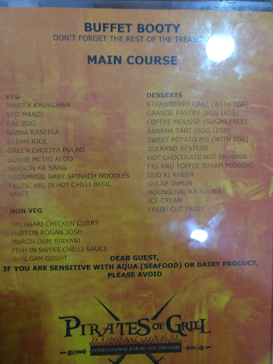 Pirates of Grill is a popular restaurant known for its buffet-style dining and live grill experience. The restaurant offers a wide variety of grilled meats, seafood, and vegetarian options. The ambiance is often lively, with a nautical theme, making it a fun place to dine.