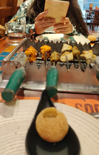 Food (4/5) : The actual thing starts with starters getting served on the table on grill rods put on the small grill on table, with repeats. You will like it and it tastes good. CAVEAT: They may end up serving you starters with high on spice and chilli. Which implies that you will eat starters and end up having lots of water to neutralize it and eat less main course from buffet. So, nothing wrong here. Please decide what matters more for you. Starters, main course or both. And accordingly decide on either to have more repeats for starters.
