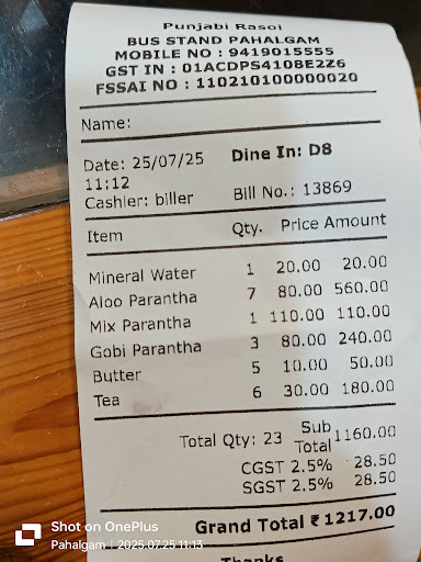 Read moreDuring my visit to Pahalgam, I dined at Punjabi Rasoi, expecting a comforting Punjabi meal. While the food did have a homely touch in terms of preparation style, the overall experience was a bit underwhelming. The Dal Makhani, unfortunately, was slightly sour, which affected the overall taste of the meal. The Chana Masala and other North Indian dishes were decent, but nothing exceptional stood out.