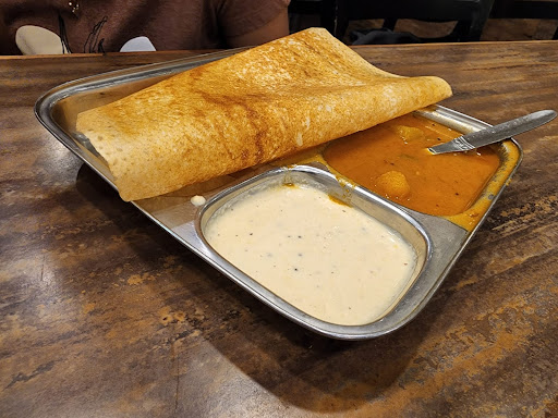 Our order included Mysore Masala Dosa (4/5), Mysore Plain Dosa (3/5, very spicy), Plain Dosa (4/5), Idli (5/5), Vada (4/5), Filter Coffee (2/5), and Lassi (2.5/5). The dosas were quite thin, so if you usually have one, you might need two here. The vadas were flavorful, though noticeably smaller than the usual size. Sadly, both the filter coffee and lassi were disappointing.