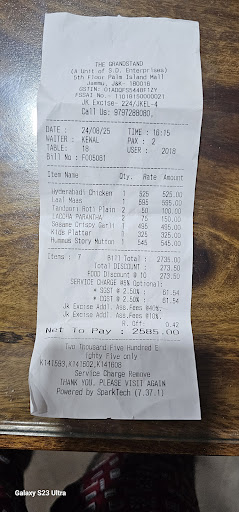 Read moreWarning: Spoiled food Visited Grandstand for the second time while we are at Jammu, however this was the Sunday afternoon for lunch... Ambience and service is undoubtedly good, However it was well evident that we were served Stale and Old chicken and from 4 snacks we ordered, only crispy corn was Okay... even momos filing was not fresh...