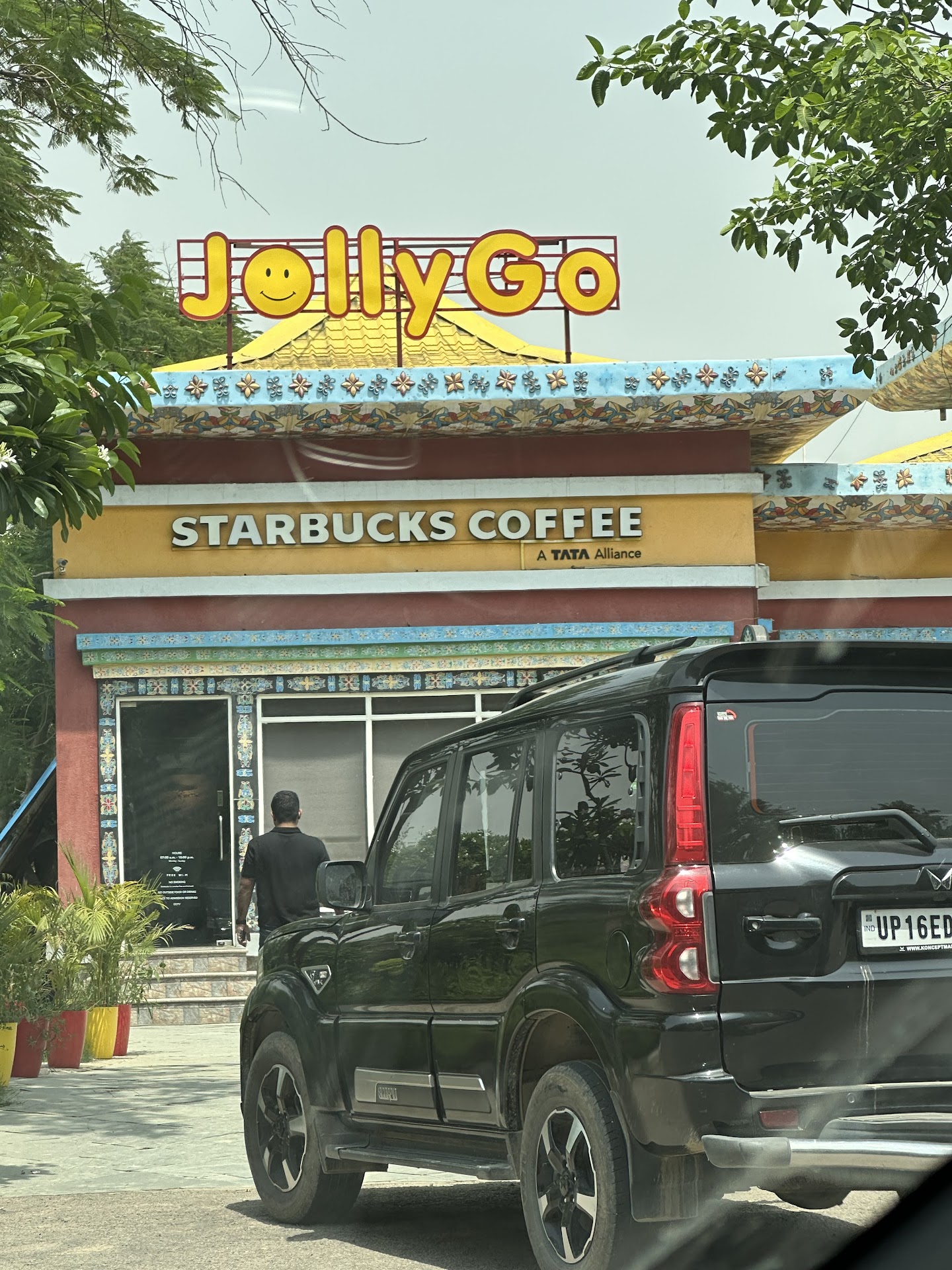 Read moreJollyGo Food Court is a popular highway stopover on the Yamuna Expressway between Delhi and Agra. It is located near the Indian Oil Petrol Pump at Allauddinnagar, Jewar in Uttar Pradesh. Travellers often stop here to take a break from long journeys on the expressway. The food court houses well-known brands like Burger King, Starbucks, Dominos and other quick-service outlets. It also offers Indian favourites such as dosas, parathas, thalis and snacks from local counters. The large parking area makes it convenient for cars, buses and tourist vehicles. Inside, the seating space is spacious and designed to handle heavy crowds on weekends or holidays. Clean restrooms and basic facilities are available for travellers’ comfort. Many visitors appreciate the variety of cuisines under one roof. Prices are higher than roadside dhabas but comparable to branded outlets. Some reviews mention that maintenance and cleanliness could still be improved. It is a good place to grab coffee or a meal while refuelling your vehicle at the adjacent petrol pump. JollyGo is especially handy for families travelling with children because of its safe indoor environment. It serves as both a food court and a refreshment hub on one of India’s busiest expressways. Overall, JollyGo Food Court is a reliable and convenient pit stop offering multiple food choices...