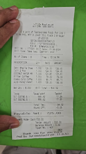 Food: Dahi wada - didn't look fresh Parantha - without salt Coconut water - OK but for Rs 130 Hot coffee: real bad