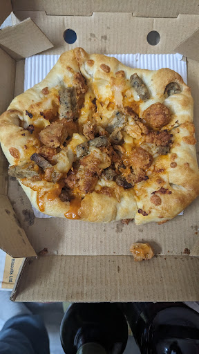 This outlet even lacks the supply of staffs. As they had one guy to handover the pizzas to customers cutting the slices poorly and the same one is also entertaining the customers order, issues, queries and everything.