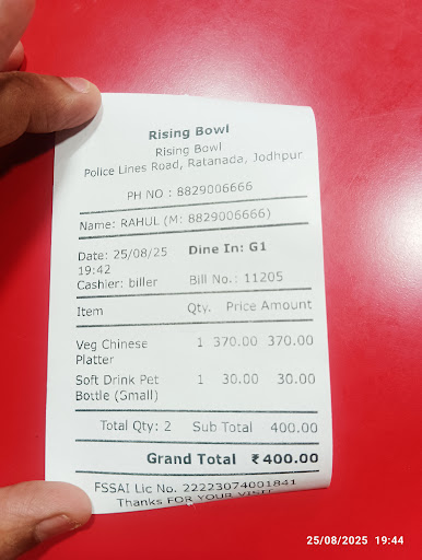The prices at Rising Bowl are very reasonable, making it a great option whether you're dining alone or with a group. And with its convenient location in Jodhpur, it's easy to pop in for a quick lunch or a leisurely dinner.