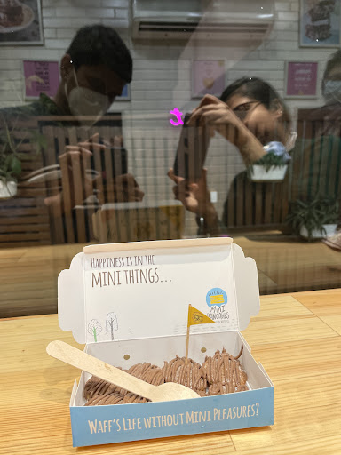 I took it to go, ordered the Belgian milk chocolate waffle-which. It was amazing, the waffle was soft, fluffy and crunchy at the same time and they didn't go soft on the chocolate. They added the perfect amount of chocolate to not cover the taste of the waffle too much but also not to lack in chocolate either.