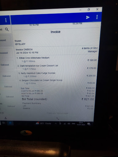 Read moreWe went to this place yesterday and it was easily the worst experience I've ever had in a desert place. No cleanliness,ants everywhere , the above floor was entirely closed as the air conditioners were not working, there were just 4,5 chairs below for sitting, all the different desert orders had the same taste, ig same flavour was used in all of them . The KitKat Oreo milkshake did not contain pieces of KitKat and Oreo ,no toppings in any of the orders .... Where have you seen that !! The order is given in the photos below. The worst thing was that the order was given in cheap plastic containers whereas it has to be served in proper jars. The person there also wasn't able to respond properly to our...