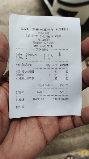 My brother took me to this place, Sai Shraddha, Pure Vegetarian, sufficient place to sit & have food, spacious, on main road, with parking facility, easily accessible while coming from station side or from Adharwadi area, Wayle Nagar area.