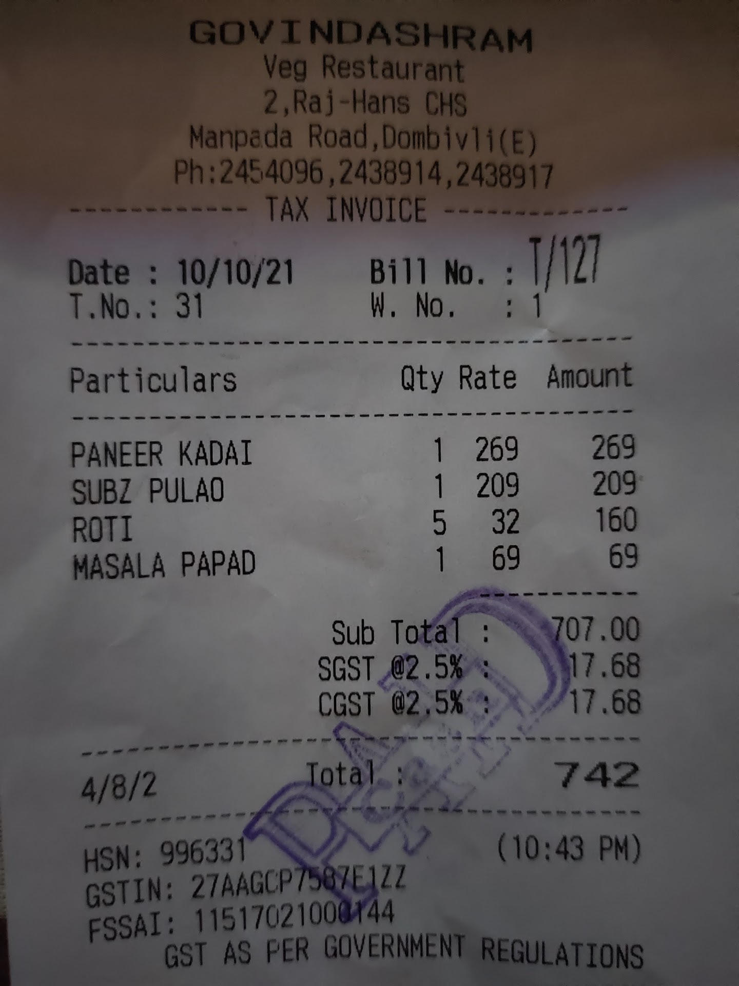 It no longer tastes like "Kamath's Govindashram".. it tastes more like Gujju food..sweet dishes..