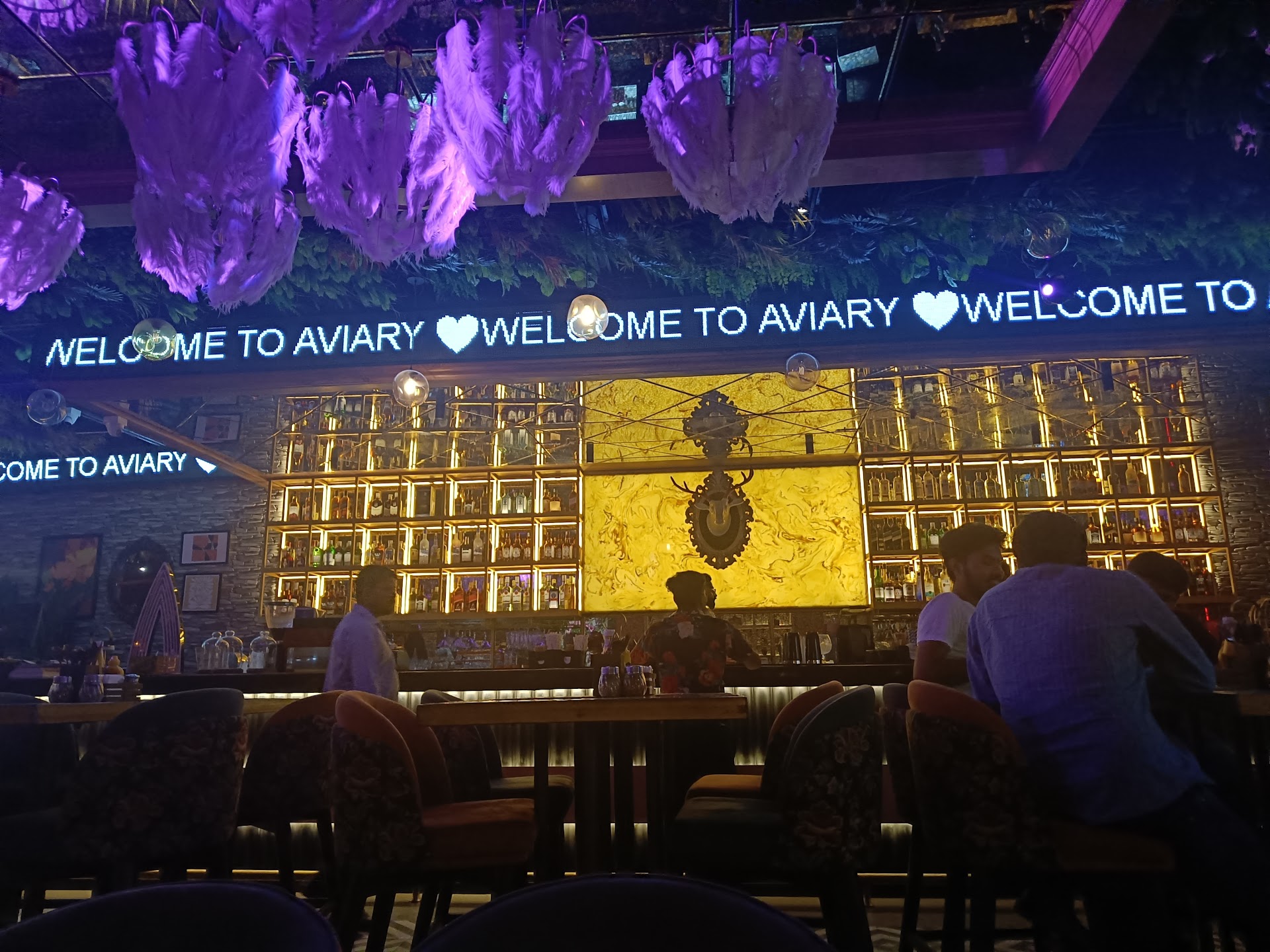 The ambiance is one of Aviary's strongest suits. The restaurant boasts a chic, modern interior with cozy enclosures that offer an intimate dining experience. Whether you're here for a romantic dinner or a casual outing with friends, the setting is perfect. For sports enthusiasts, multiple screens broadcasting live cricket and football matches add an exciting vibe.