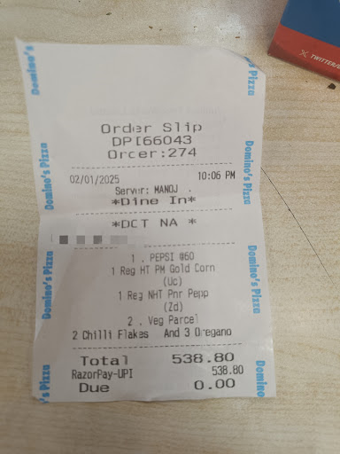 Very bad experience, not expected from Dominos.. I hope the management reads this review and takes some action. So from now on, No...