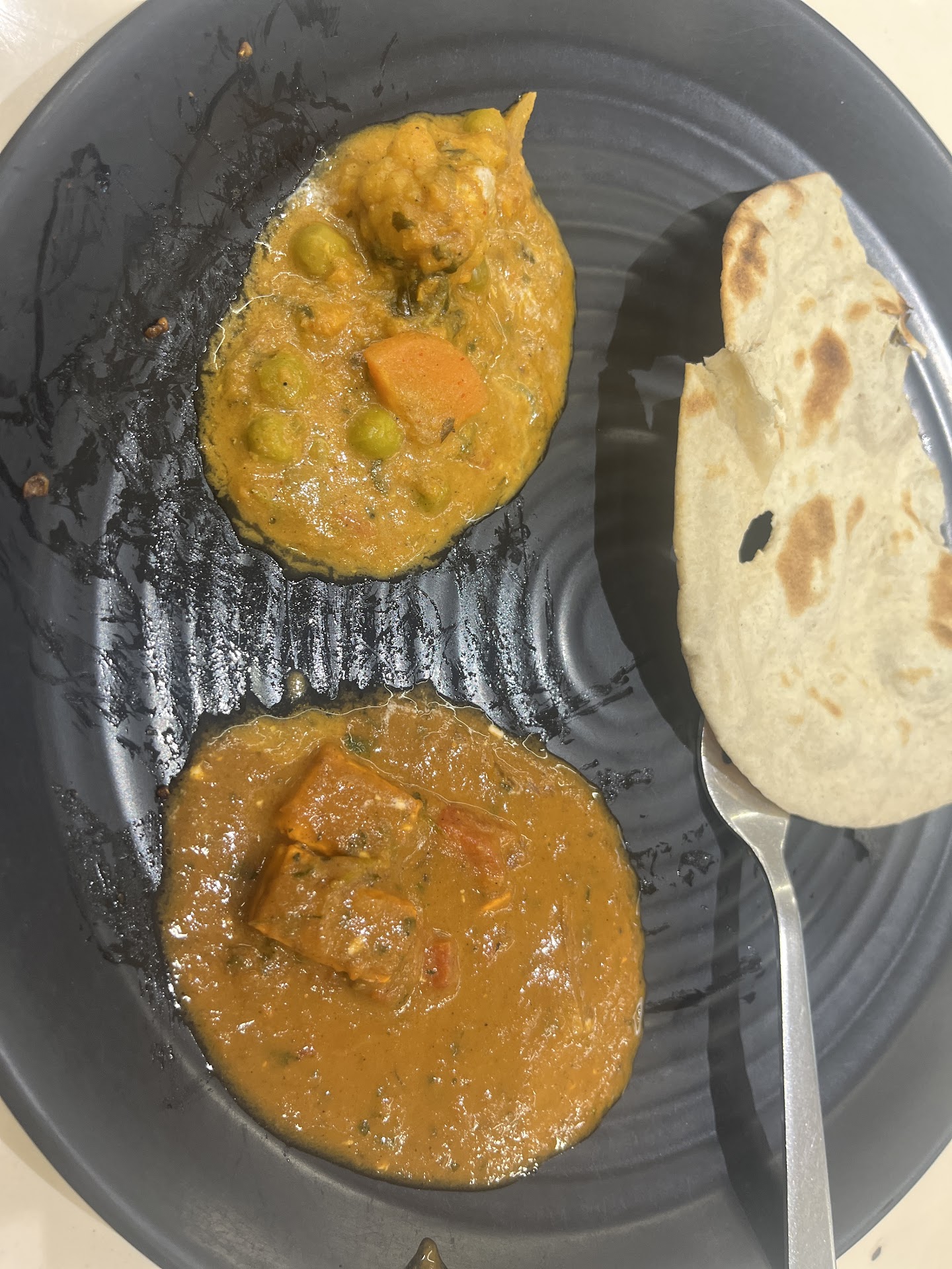 Thirdly the food. After waiting for more than 40 mins the food finally comes. We had ordered the northern thali with garlic naan and butter panner. The northern thali is not proper northern as northern dishes don't have manchurian or veg manchow soup. But this genius thali did have them both. And in the thali we were supposed to get kala jamun but it wasn't even there. Instead there was some other roti sweet thingy, its understandable if the kala jamun was over but should have informed us before ordering. And the butter paneer barely had enough panner or infact any other vegetables. Other than that it was very salty for my palet.