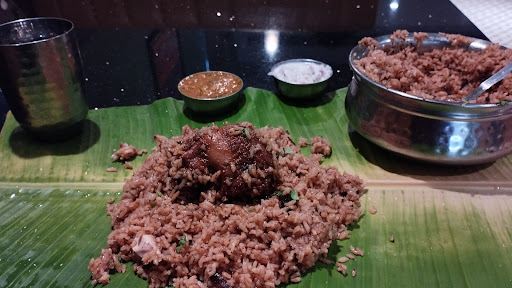 Anjappar Restaurant offers a delightful dining experience with its tasty biriyani and generous portions. During our visit, we ordered the nattukozhi biriyani, chicken 65 biriyani, egg Manchurian, and chicken Manchurian. The nattukozhi biriyani was flavorful, with tender pieces of chicken infused with aromatic spices. The chicken 65 biriyani was equally impressive, offering a perfect blend of spices and well-cooked chicken.