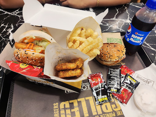 ย ย ย Read moreThis place is the best if you want to eat a snack if two veg burgers burgers for 89 rs salted French fries regular is only 119 potato stripes for 59 for a four price and an alphonso mango milkshake for 139 you can get this all for under 500 and I am fillled already this is amazing and donโt get me started on the customer service they are so nice to kids I am a kid who came her alone with my friend and finished everything under 500rs so I highly recommend this place anytime if you come across...