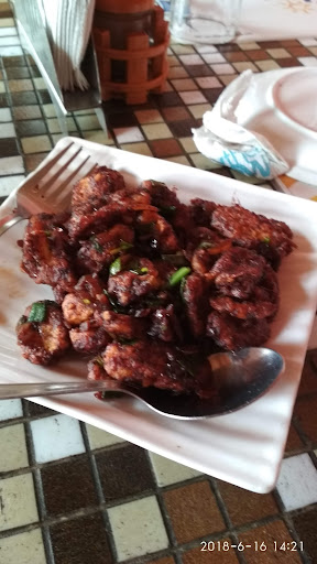Food is good.We had garlic butter prawn which was delicious in its white creamy gravy. Momos are average but they did not serve with the right cutney. Neer dosa and mutton roganjosh were also very very good.Desserts are not many.And once you are out , there is a panwala with delicious paan.