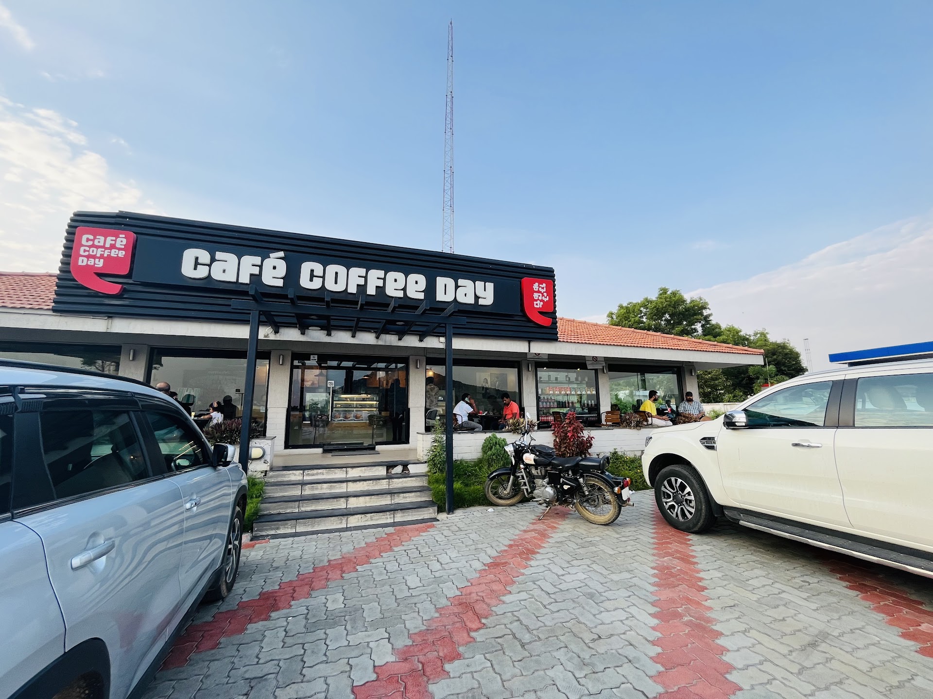 At first we thought it was a cool place for a cup of Coffee especially a stop over during a ride.. When we stopped over there were a few people mostly corporate employees seated. After we stopped we found that there were some people (Probably Locals) there who were playing loud music in their cars and were abusing each other using very bad words, we later found that they were chasing each other and smearing something ( which looked like oil) on themselves. They left after a few minutes. We thought it would be peaceful after that, but alas just then comes another group (again looked like locals) in a suv and some motorcycles and started playing loud music, Most of them drunk. After about 15 mins A employee of coffee day went and asked them to stop playing the music ( I think some Customer asked the employee to do that). They stopped the music but we're celebrating somebody's birthday shouting loudly and running all over the place. We thought we better leave instead of getting more irritated, we came down to the parking lot to find some motorcycles parked right in front of our vehicles and we could not go, we asked a employee of coffee day to request the owner of the Motorcycles (again some corporate customers who came just before we were leaving) to move the vehicles so that we can get going but to our surprise the employee (In Uniform) bluntly said that nothing can be done and we have to Wait for the customers to come out .. We had to move the Motorcycles ourselves to move out. Pathetic Service and a Sad place ( if you are looking for a cuppa and some peace of mind, you will get more irritated there). I do not know if this is a regular occurrence or it's just that we happened to be there on a wrong day with the...